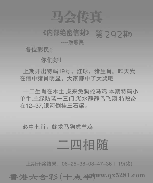 | 292期 | 猪 | 6尾 | 绿双 | 38-47 | 20狗 |