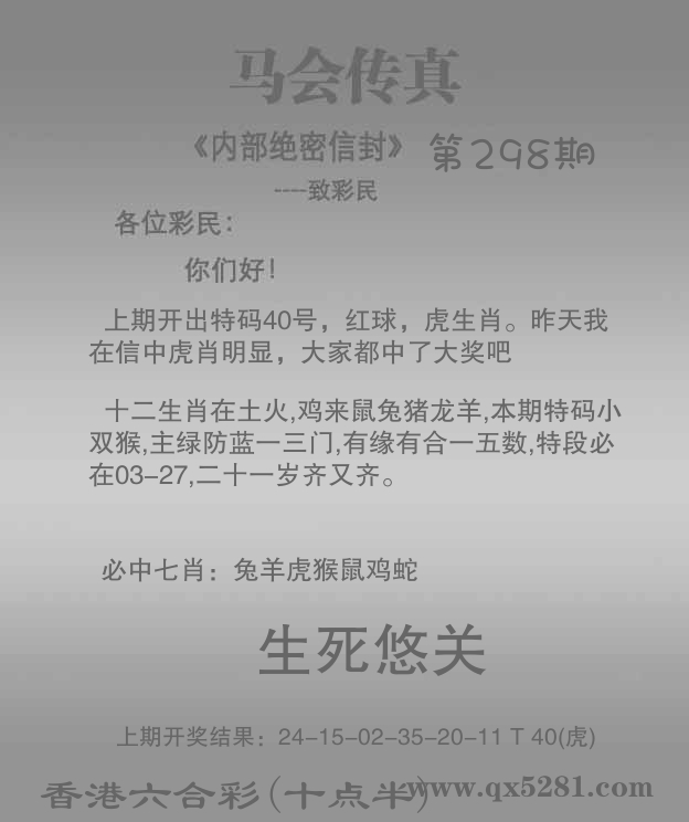 | 297期: ⑥肖 | 鼠虎兔猴蛇狗 | 虎40中 |