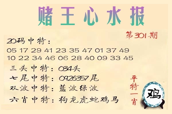 | 301期:公式四肖 | 301期:公式三头 | 301期:公式杀肖 |
